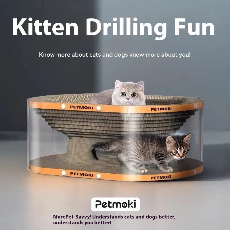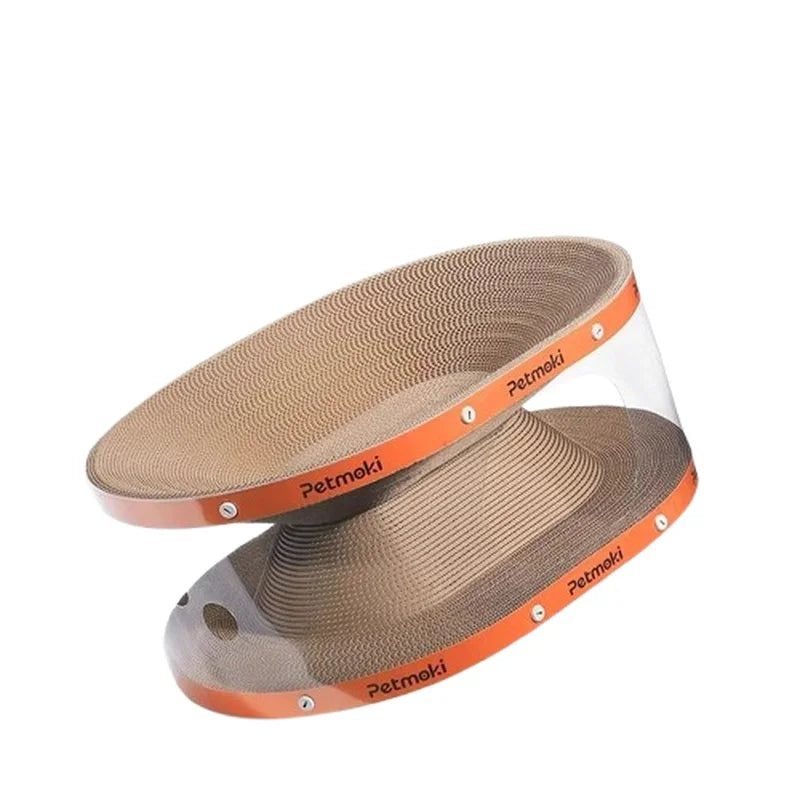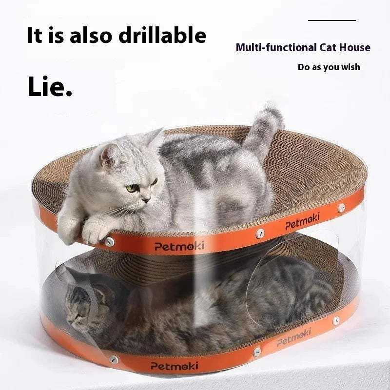 Elevate your home and delight your feline friend with the Petmoki Modern Cat Scratcher Lounge. This isn't just another cardboard scratcher; it's a beautifully designed piece of pet furniture that seamlessly blends function, fun, and contemporary style. Its unique transparent frame and ergonomic shape make it the perfect spot for your cat to satisfy their natural instincts to scratch, play, and lounge in comfort.