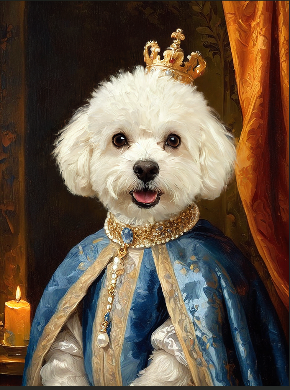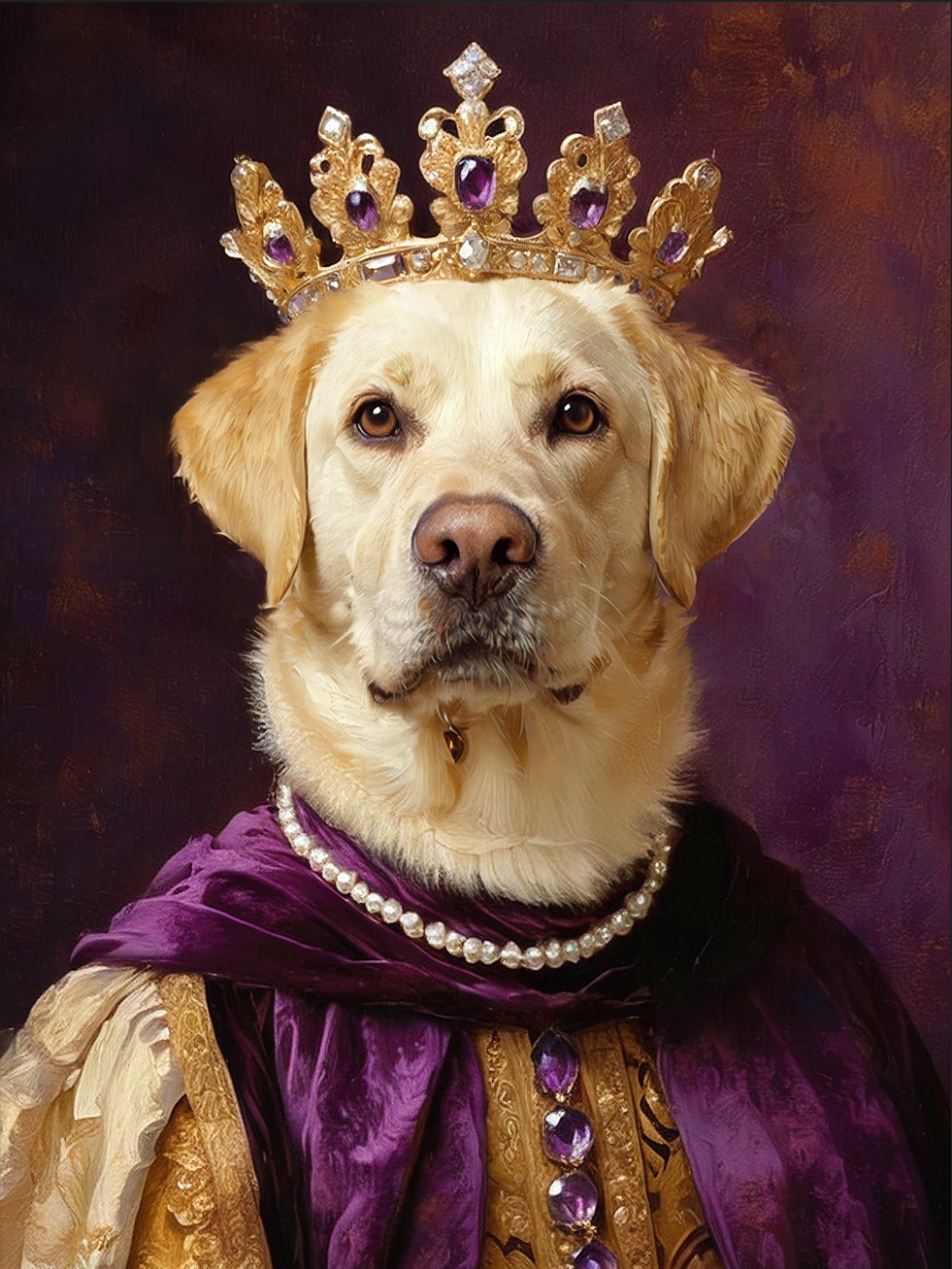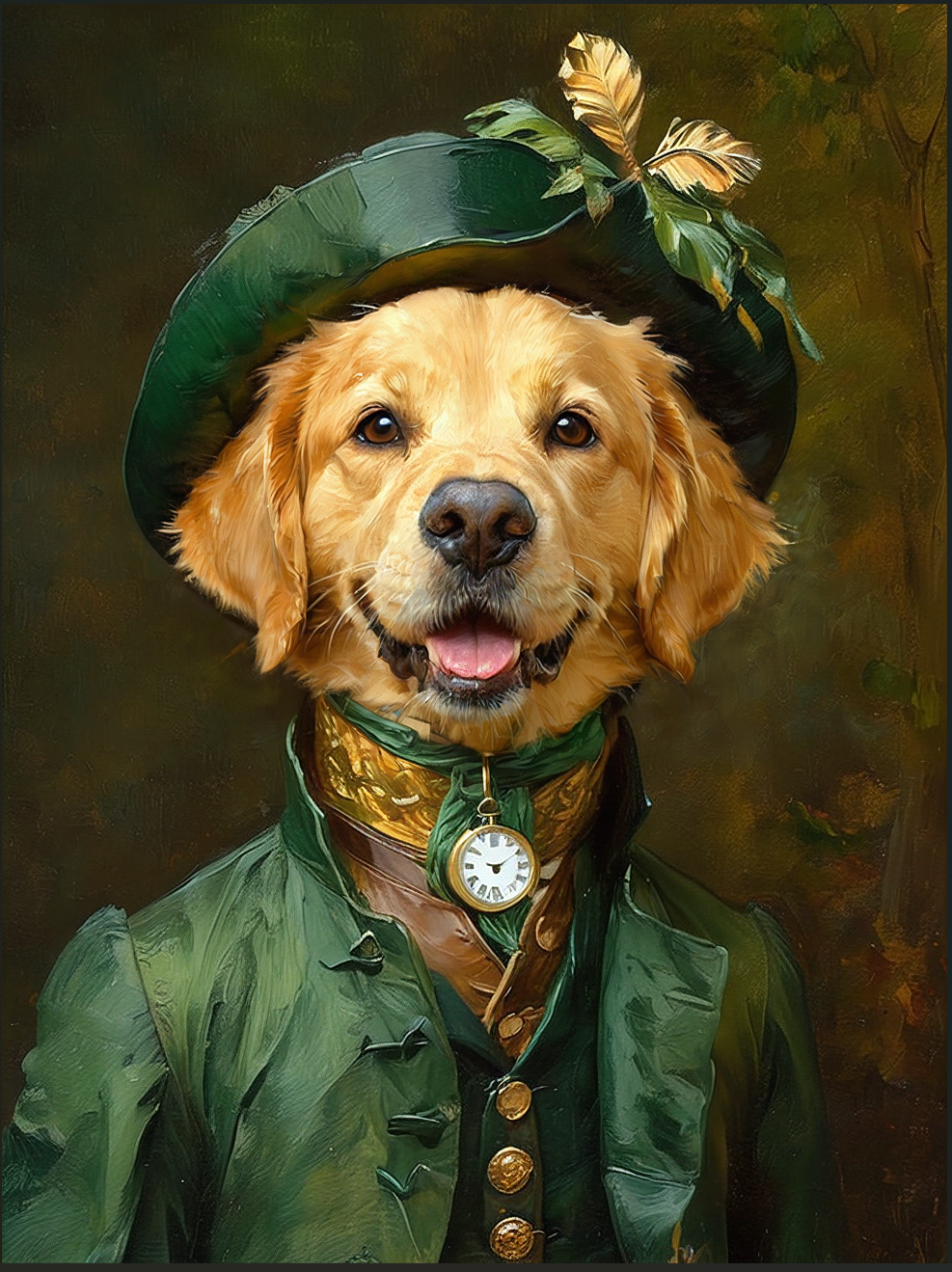 Imagine your furry, scaly, or feathered friend gazing down from your wall, transformed into a magnificent, hand-painted noble from a bygone era. Our custom pet oil portraits blend your pet's adorable personality with the timeless grandeur of classic art, creating an heirloom piece you'll treasure forever.