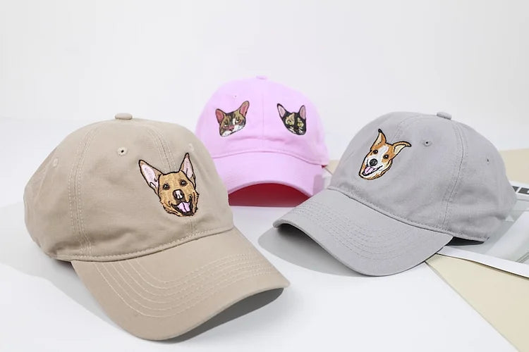 Carry a piece of your heart with you on every adventure. Order your custom pet portrait hat today!