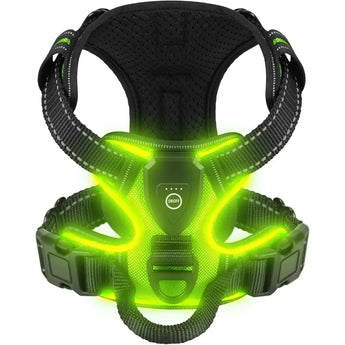 Enhance safety and visibility on your walks with our USB Rechargeable LED Dog Harness. This premium light-up dog vest is the ultimate piece of outdoor gear for night walking, ensuring your pet is highly visible to motorists and pedestrians. Engineered for comfort and control, this no-pull harness features soft, padded lining and breathable mesh to prevent chafing, while the heavy-duty, adjustable straps guarantee a secure and perfect fit. With bright, illuminated tubing and integrated reflective stitching, this safety harness offers peace of mind, keeping your furry friend safe in all low-light conditions.